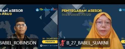 PANGKALPINANG, BERITA-FAKTA.COM – Sebanyak 92 asesor dari berbagai instansi di Provinsi Kepulauan Bangka Belitung, termasuk dua perwakilan dari Kantor Wilayah Kementerian Agama Provinsi, mengikuti kegiatan Penyegaran Asesor Instrumen PAUD Tahun 2025 yang diselenggarakan secara daring pada 25-26 Juli 2025 melalui platform Zoom Meeting, difasilitasi oleh Badan Akreditasi Nasional Pendidikan Anak Usia Dini dan Pendidikan Nonformal (BAN-PDM) Provinsi Bangka Belitung.