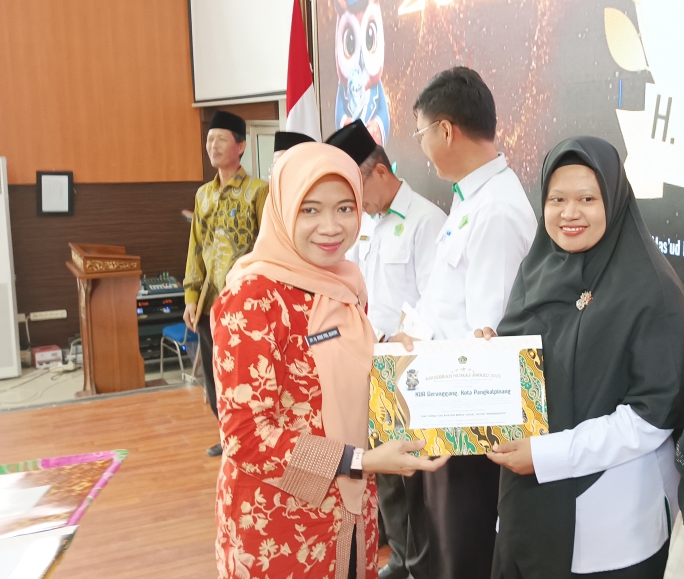 Prosesi penyerahan penghargaan berlangsung khidmat di Auditorium H. Mas’ud Hasan Qolay. Penghargaan untuk KUA Gerunggang diterima langsung oleh Kun Anifah Windusari, S.Sos.I., M.E., selaku Penyuluh Agama Islam.