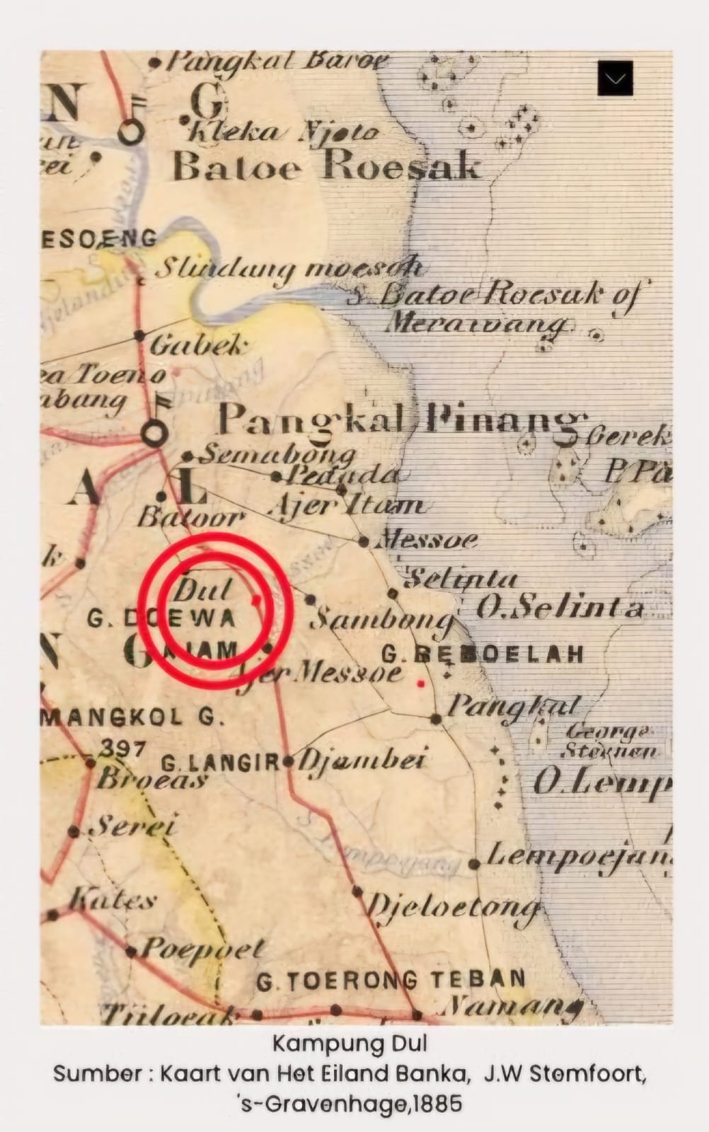 Berdasarkan peta topografi Belanda karya L. Ullman tahun 1856, Kampung Dul digambarkan sebagai daerah yang kaya akan “denyut nadi” kehidupan. Di sisi selatan, menjulang Bukit Pau dan Bukit Bungkoean bagaikan “penjaga setia”, sementara di sisi timur, “mengalir” jernih Air Kerasa. Sebuah gambaran yang semakin memperkuat posisi Kampung Dul sebagai wilayah yang tak hanya bersejarah, tetapi juga kaya akan potensi geografis.