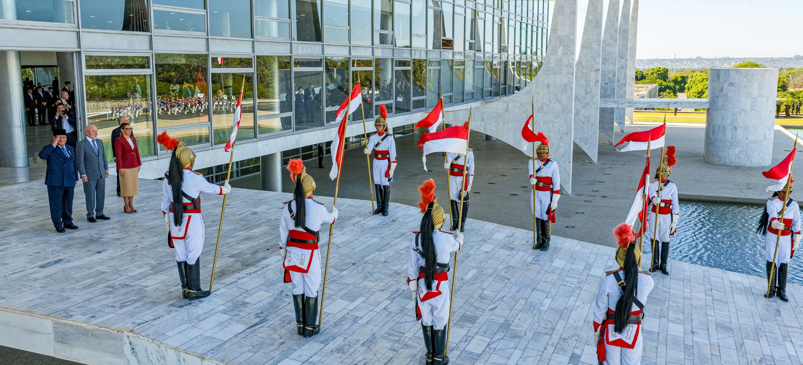 Kunjungan ini diperkaya dengan parade drumband dan Pasukan Berkuda Brasil yang mengibarkan bendera Indonesia di balkon Istana Planalto.