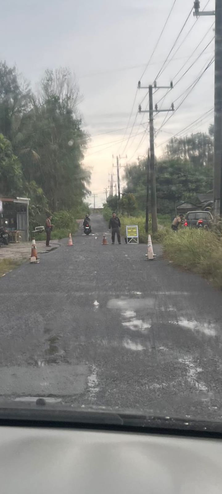 ​Tampak dalam gambar , beberapa petugas, diduga anggota Satgas Timah, berjaga dan menyetop ketat setiap kendaraan, khususnya mobil, yang hendak melintas.